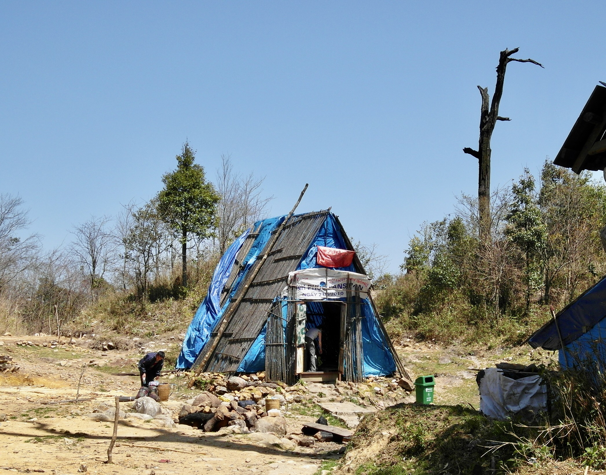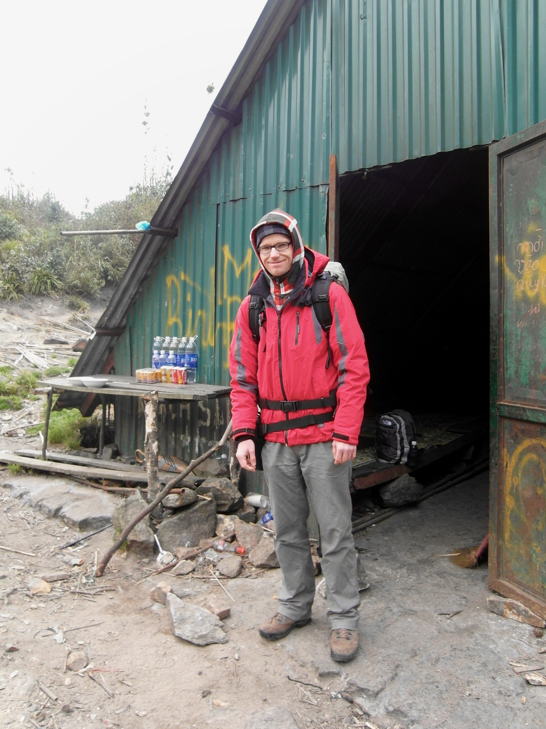 Schon um 11:30 Uhr haben wir schon das erste Camp erreicht. Es war ein Verschlag aus Baumstämmen und Zeltplanen. Unser Guide zauberte ein phantastisches Frühstück aus den Zutaten, die unser Träger in einem großen Korb auf seinem Rücken beförderte.